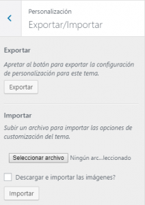 Con esta nueva actualización encontrarás una nueva funcionalidad en tu tema. A partir de ahora ya podrás exportar e importar archivos.